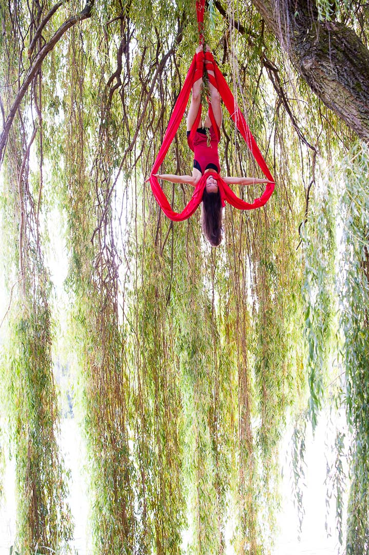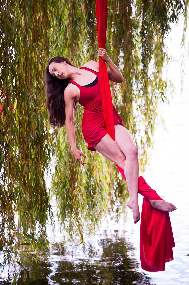 Artistische Hochzeitsunterhaltung am roten Tuch